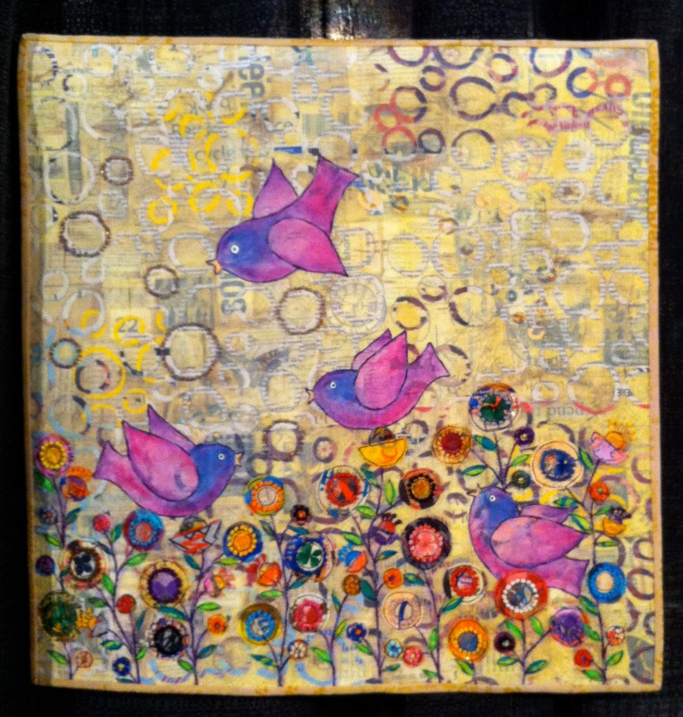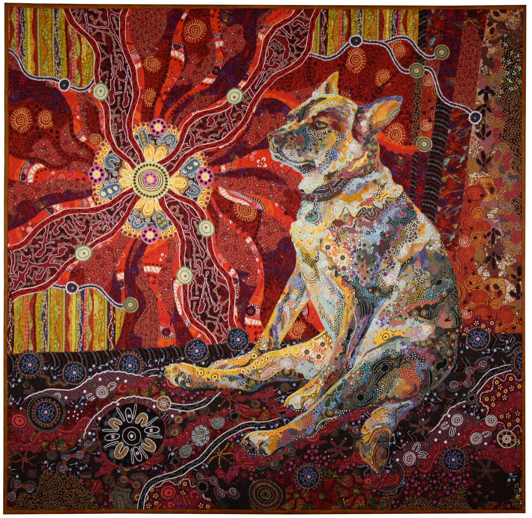 “Dixie Dingo Dreaming” by award-winning fabric artist, Susan Carlson. Her work is like a collage that fuses small fabric pieces into a recognizable image.