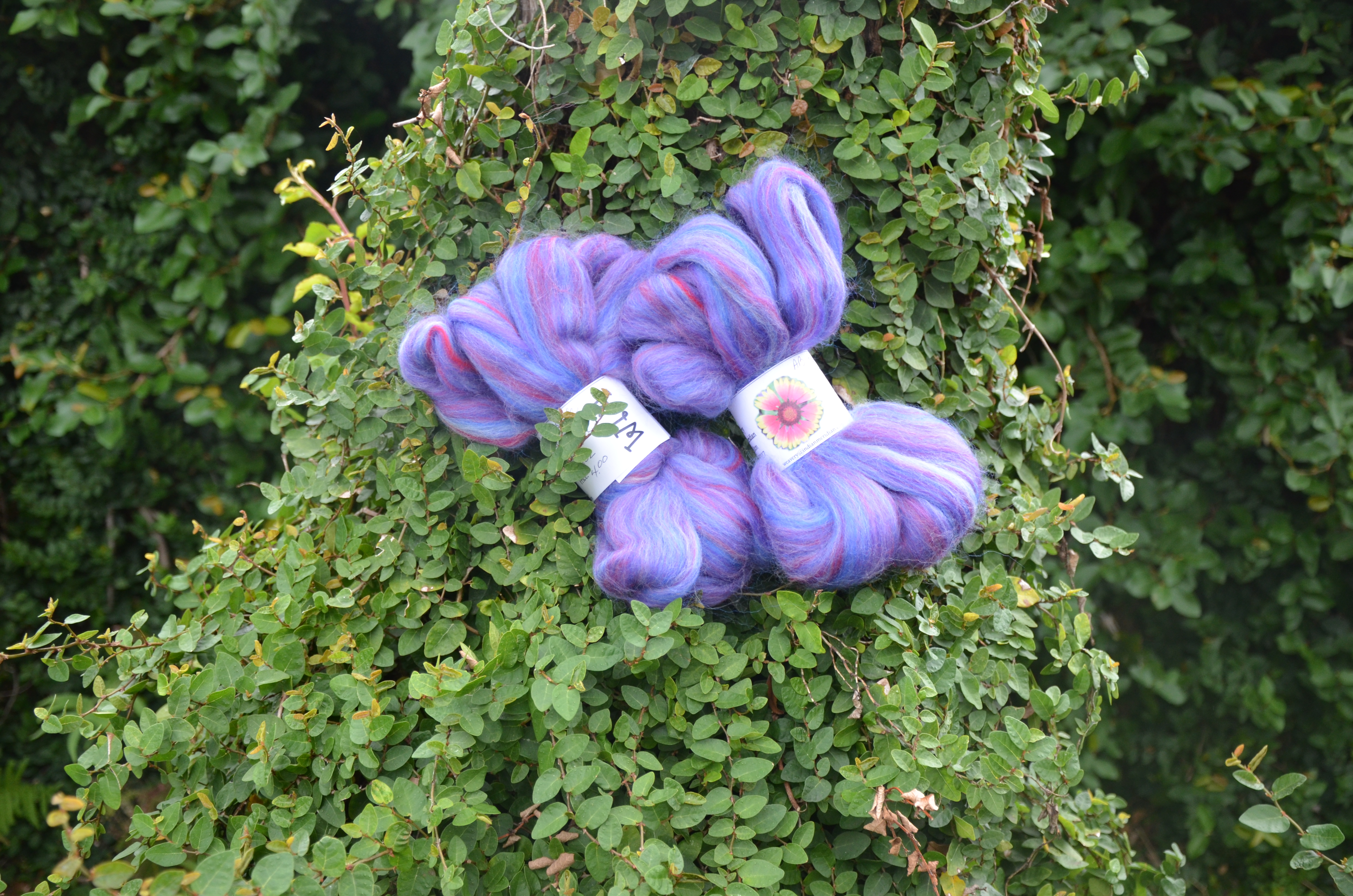 I loved the combination of the purples and reds in this dyed fiber from the Weavery at Indian Meridian.