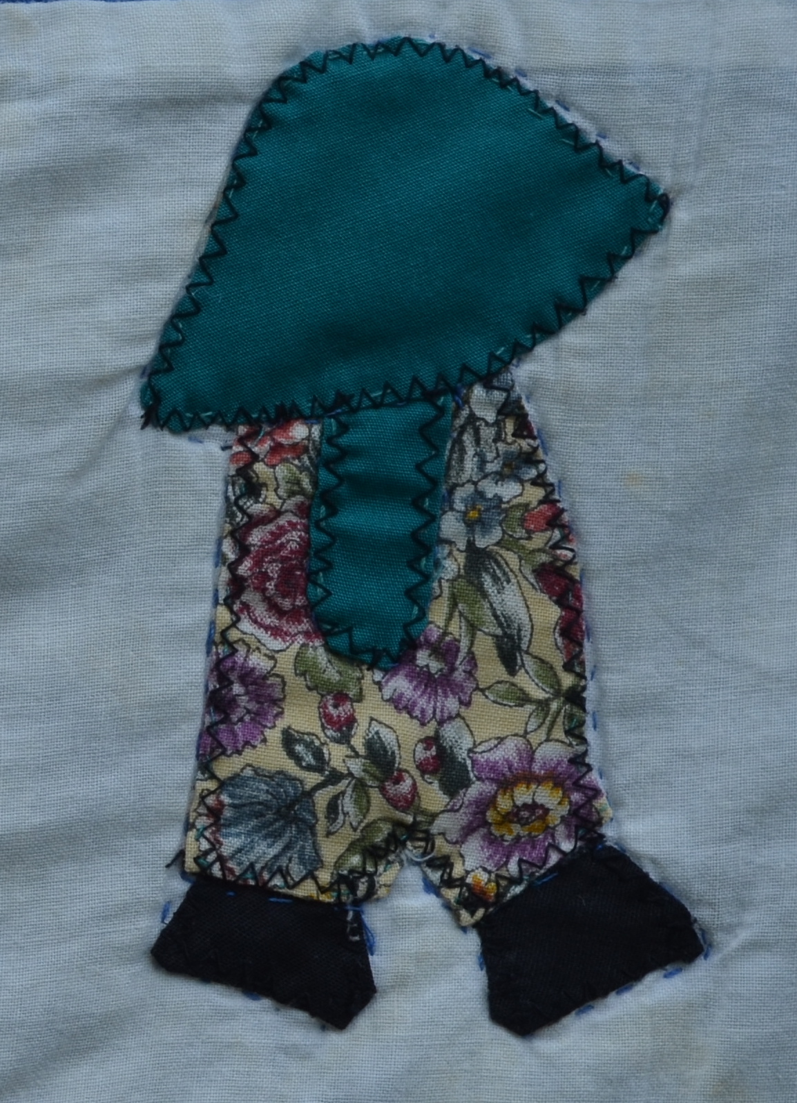 This second quilt is a simple whole cloth quilt (red background). She must have used a thicker batting because this quilt is heavier than the others. The weight is comforting somehow when you snuggle up underneath it.