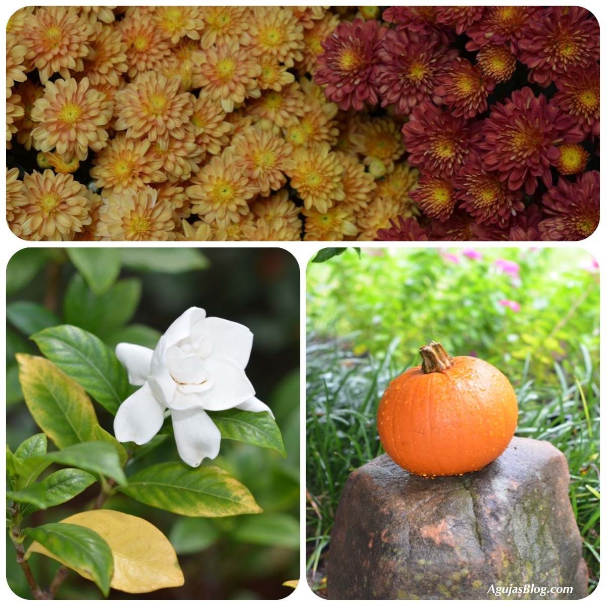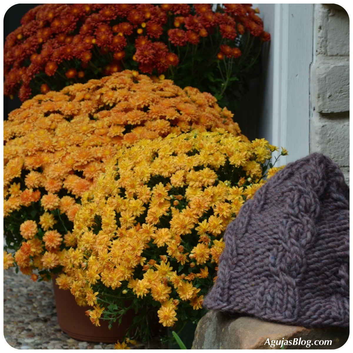 Here are some gratuitous pictures of mums and the last gardenias blooming in the garden. Those oranges, yellows and ochres brighten up our doorstep.