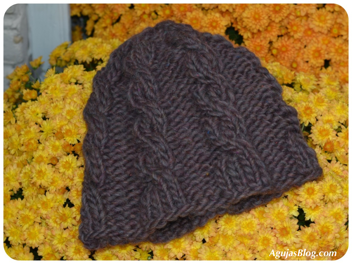 Just in time for the cool weather, I made up this chunky cabled hat from the Wooli yarn in my stash using this pattern (sans pompom).