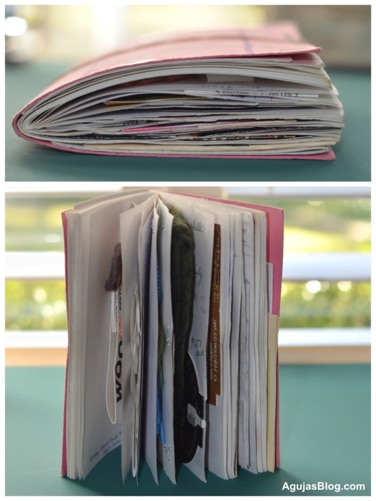 1. I was concerned about saving too much stuff but the notebook size forces me to just use a snippet of yarn. I still have many pages to go before I fill it and the notebook easily stores anywhere.
