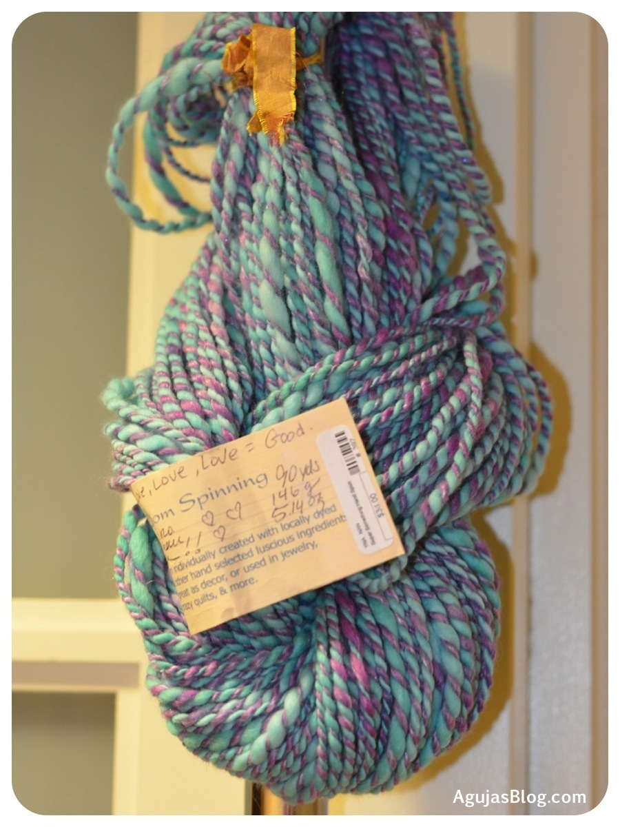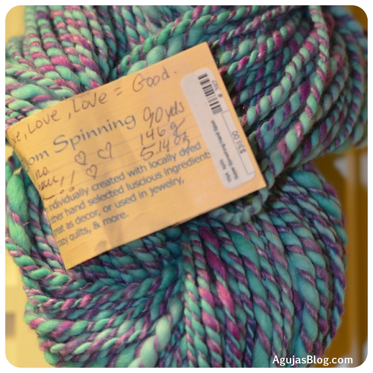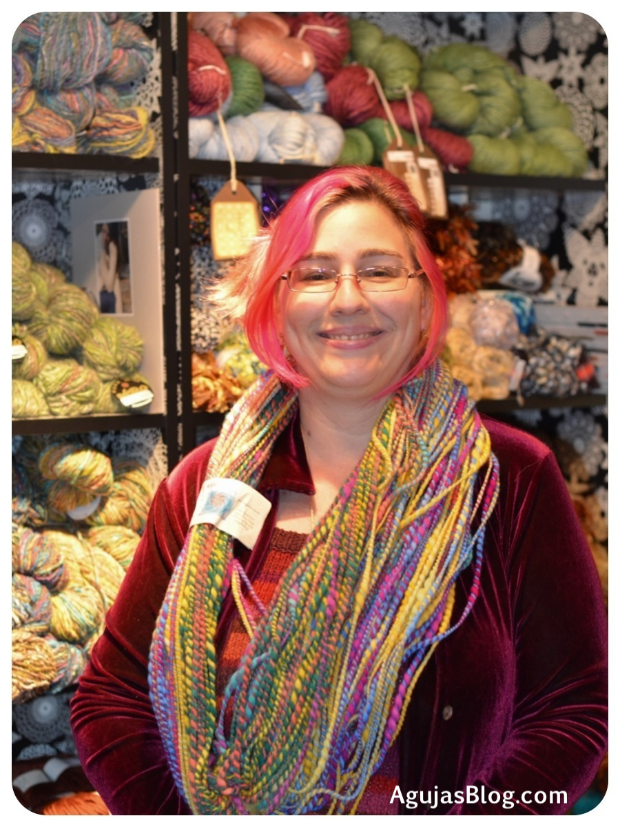 This is Nancy, owner, spinner, knitter and overall cool person. She explained that “Nangellini” was a childhood endearment her father used for her. When I asked if I could snap a photo, she agreed and grabbed that skein of hand-spun, hand-dyed yarn for the occasion. (I almost bought that skein). If I lived in Philly, my needles and I would hang out at Nangellini’s.