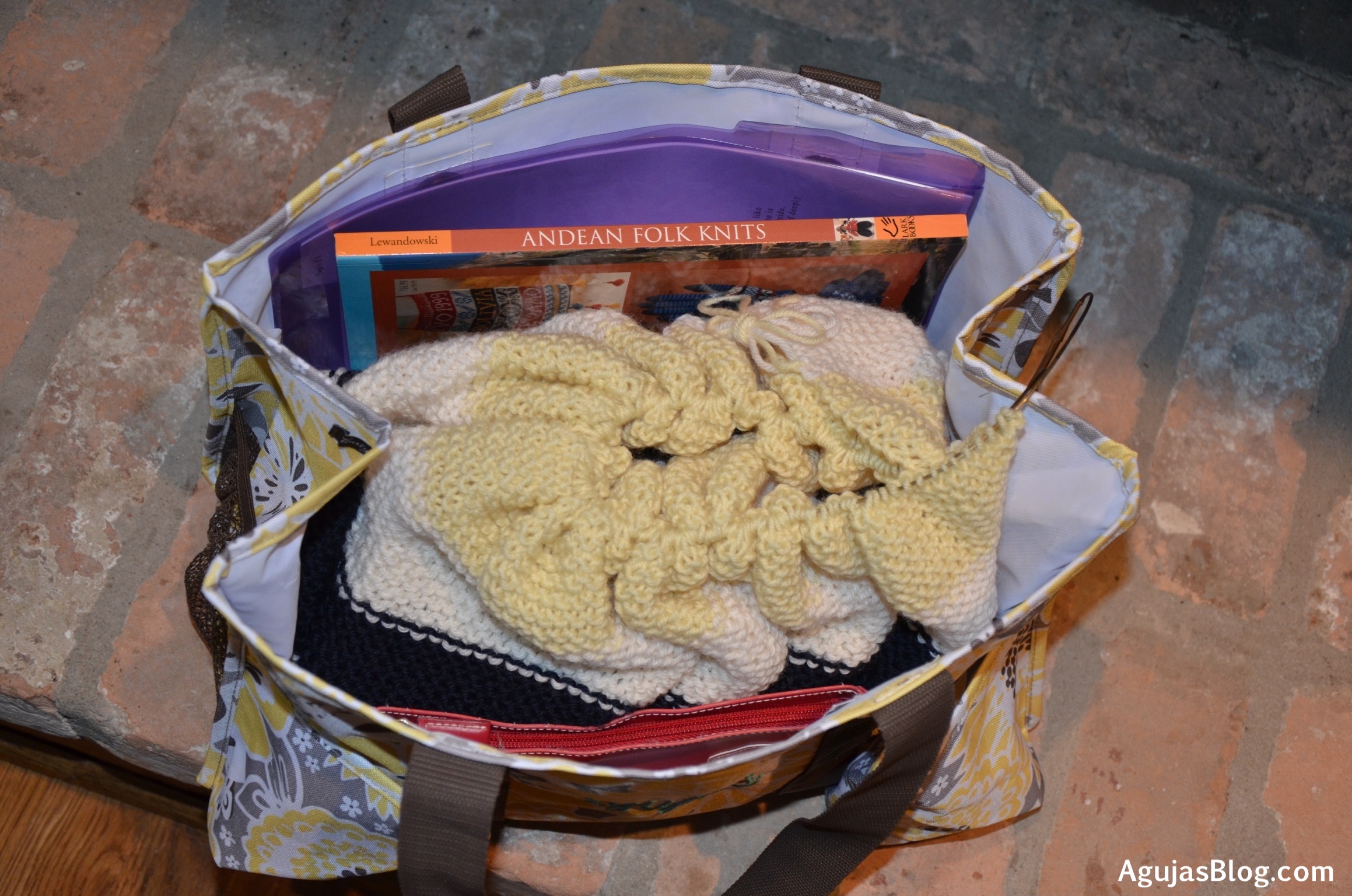 I’ve tried many other bags and was never quite satisfied with them – yarn catches on zippers, lack of extra pockets, easily tips over, or not very attractive. So far, these two are my favorites.