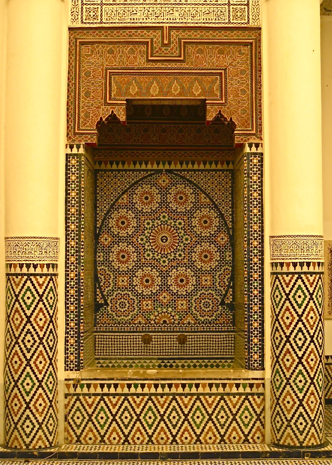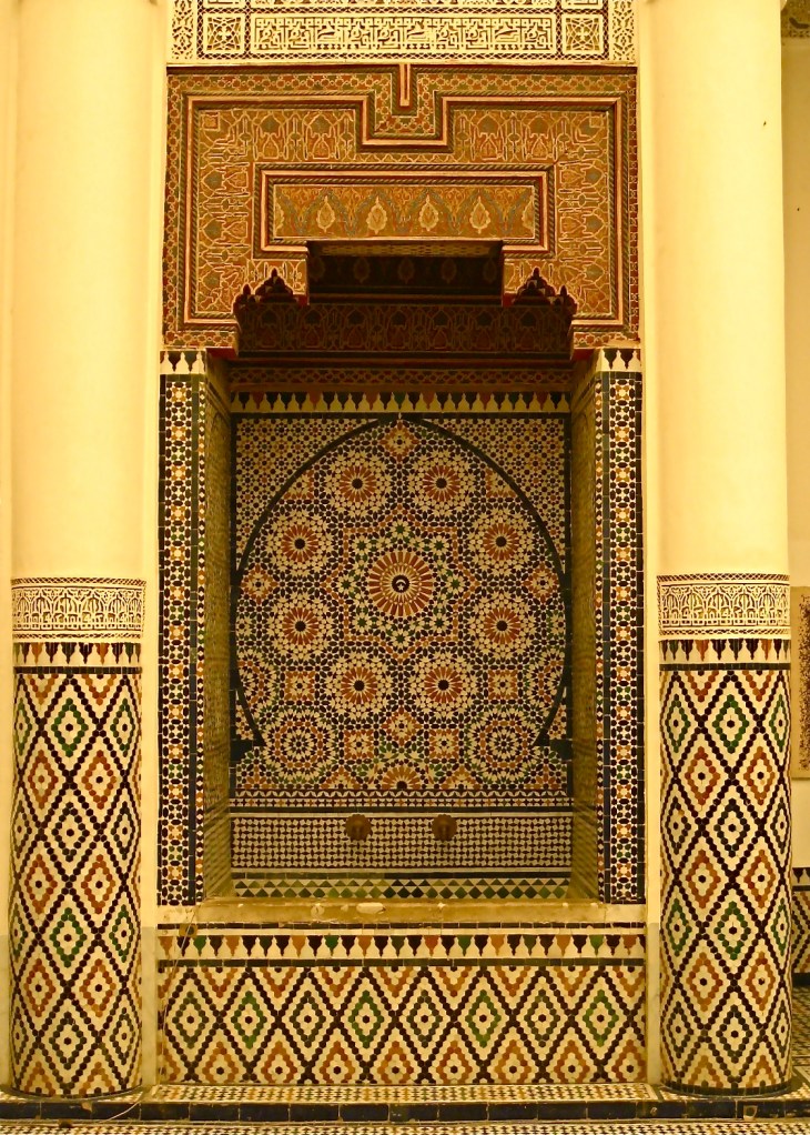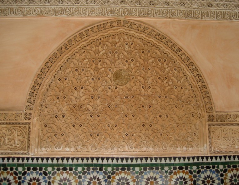 Intricate detail inside the Ben Youssef Madrasa.
