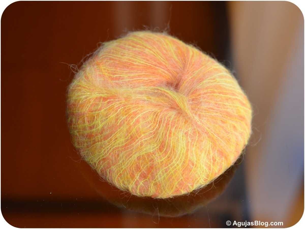 I also had to have this wispy orangey-yellow mohair. The brand is BBB and is made in Italy. It’s 70% kid mohair, 30% polyamide.