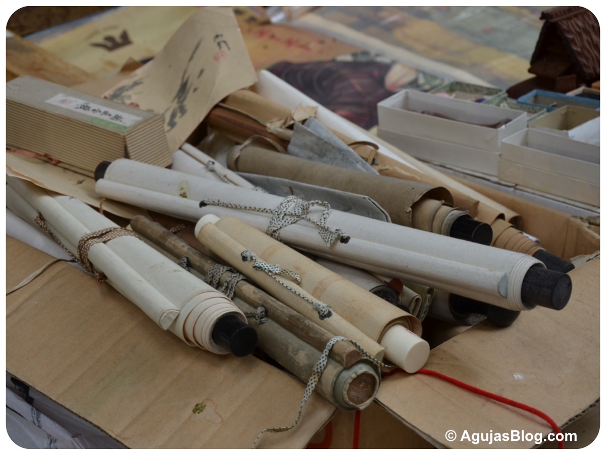 On Sundays, there is an Antiques Market on the grounds near the shrine. This particular market had old kimonos and sashes for sale.