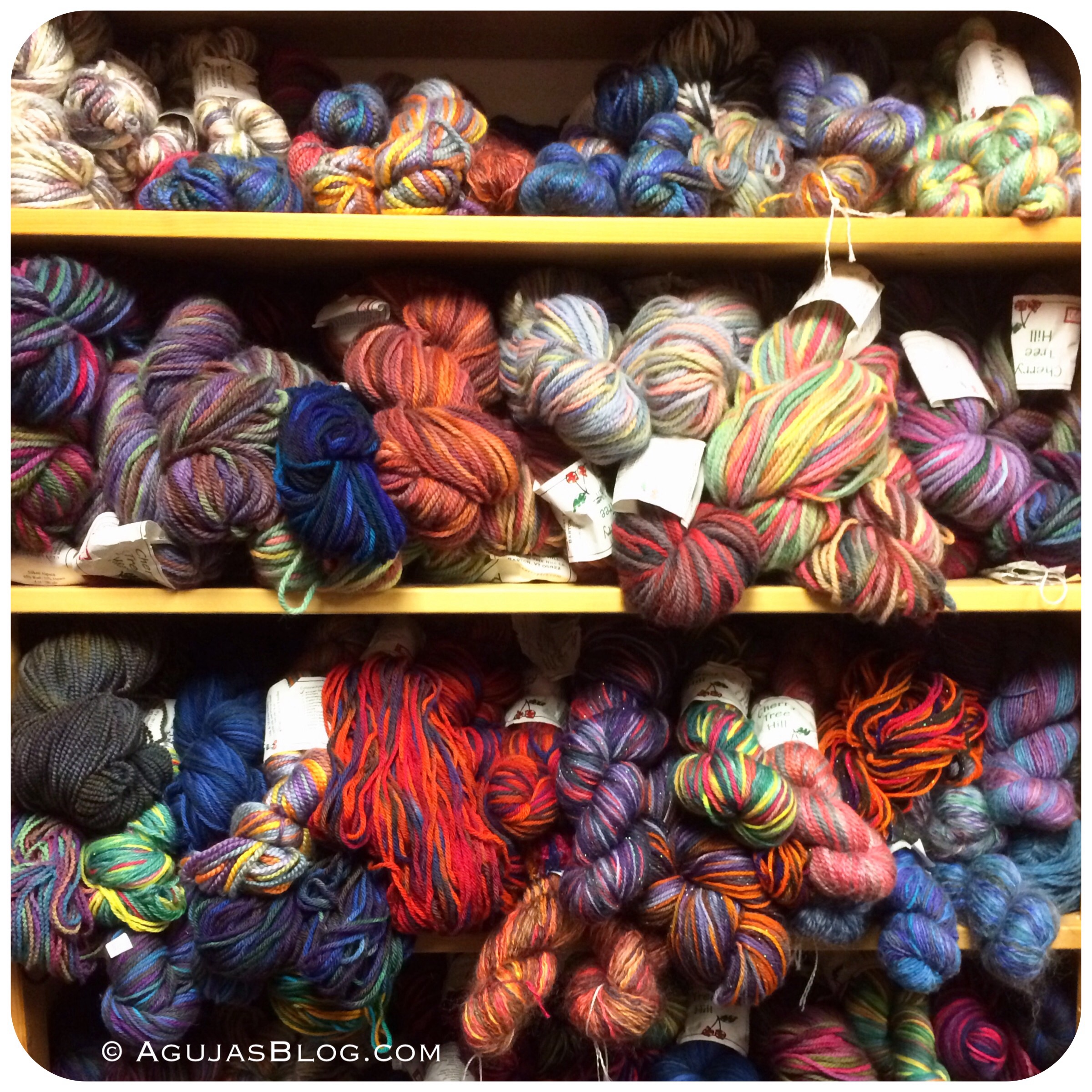 I only had a couple of days in New York City and had little hopes of finding yarn, but yarn I found. I googled “yarn” and Seaport Yarn came up only a few blocks from my hotel. You really have to be looking for it. The shop is on the fourth floor of a large building. You walk in through a nondescript door at street-level and walk or take the elevator upstairs. It’s not a very inviting entry area, even a little scary. Not the kind of place that will get street traffic. Once inside though, the place was bursting with yarn. There were cubbies of yarn practically floor to ceiling.