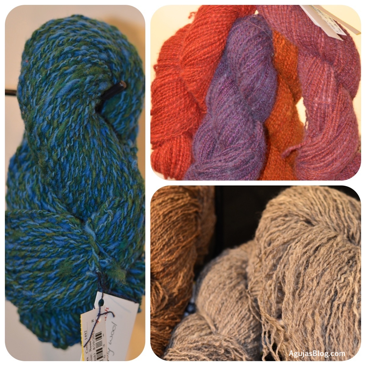 They spin their own yarn at La Casa Rosada, so all you see are natural homespun fibers turned into gigantic skeins of yarn. The diameters range from 2, 3, 4, and 8 millimeters up to 3 centimeters for bulkier yarn.