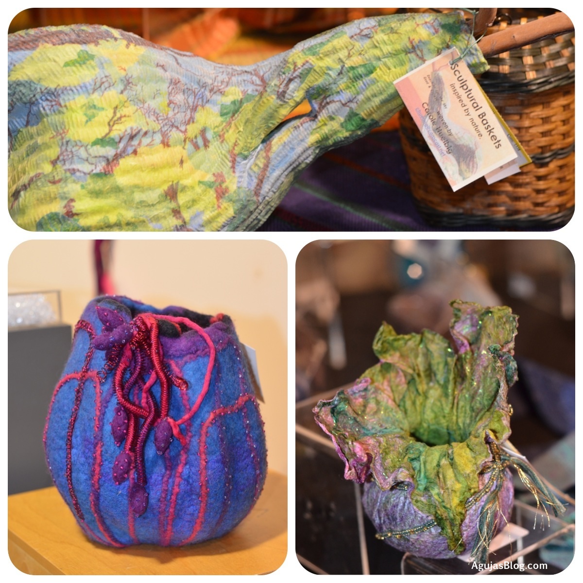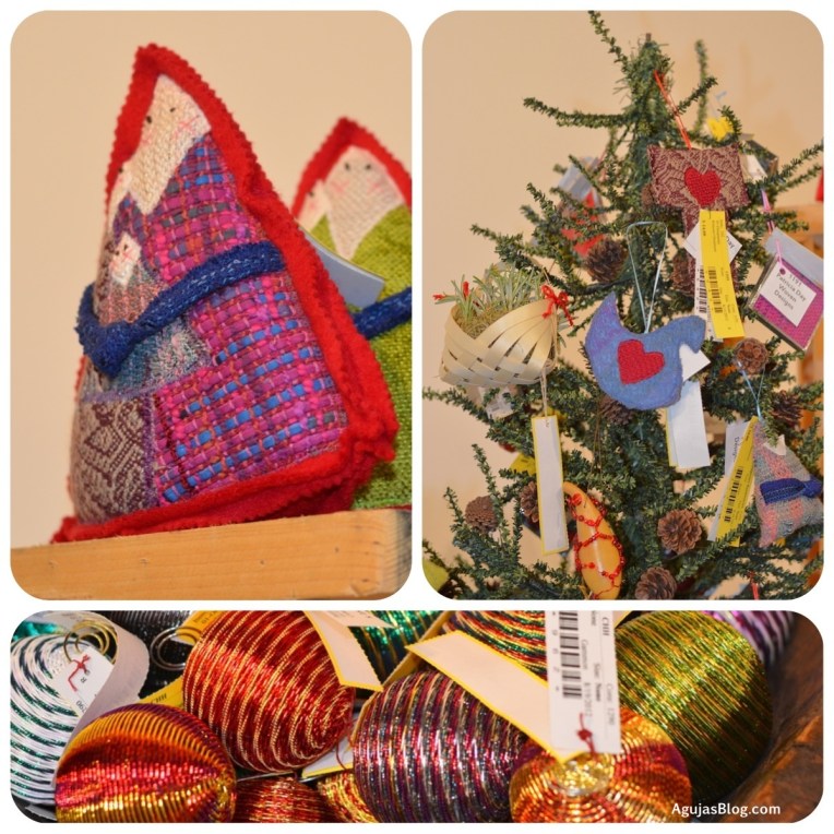 I am so glad that I went on their opening night. I did my usual walk around the rooms to look at all the displays. I then picked up a small plastic basket from the front so I could begin collecting the beautiful handwoven textiles, baskets, handmade jewelry, handspun yarn, and felted ornaments that I had singled out. I was too slow. Those ladies are fierce! Several items I had on my mental checklist were gone! Nonetheless, I had a great time looking, touching and taking pictures.
