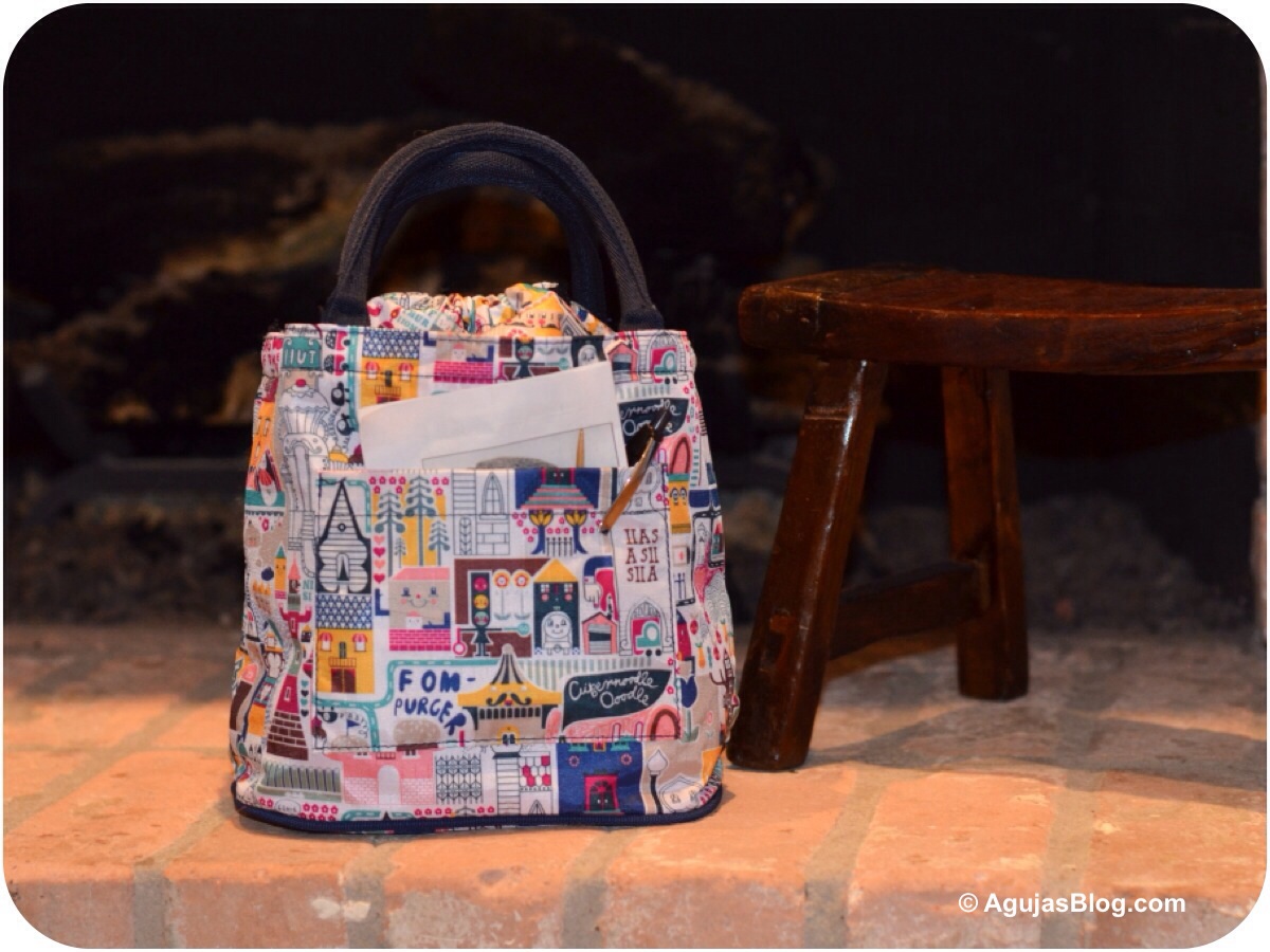 It’s easy to clean – just wipe with a damp cloth. It has this nifty side pocket for needles or a pattern.