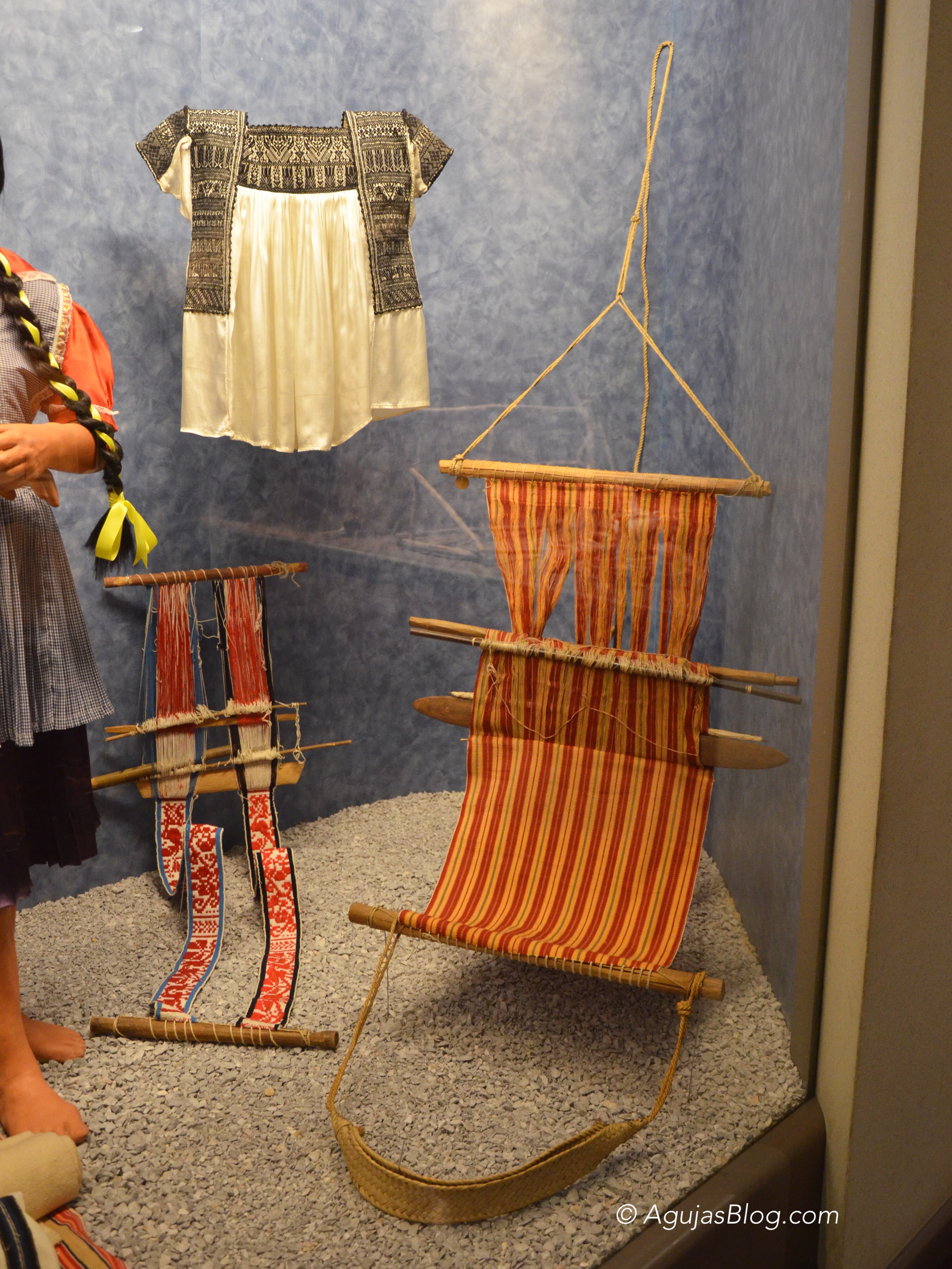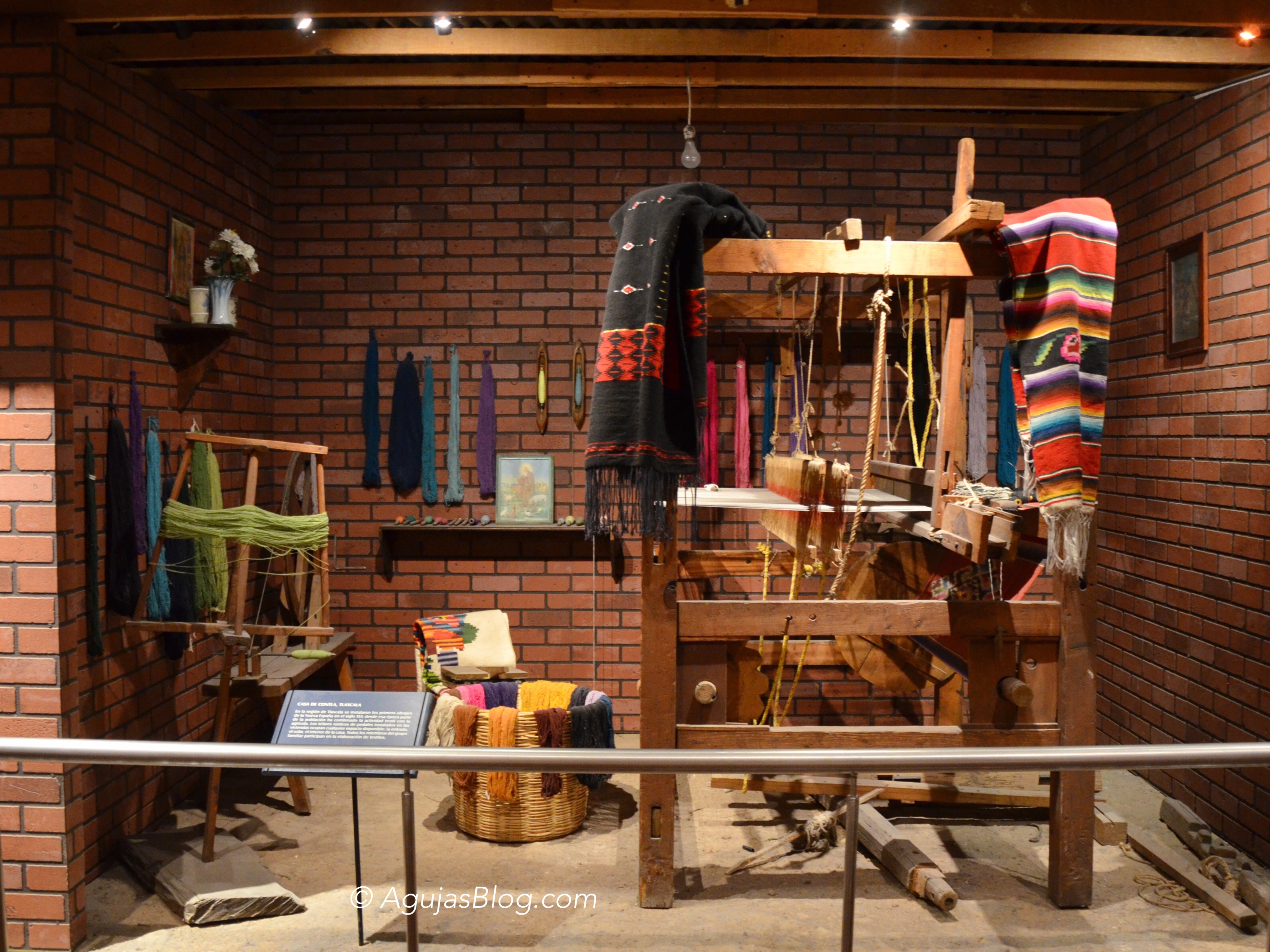 This is a reproduction of a typical home in the village of Contla in the state of Tlaxcala. According to the museum placard, rustic pedaled looms were installed in any available space.