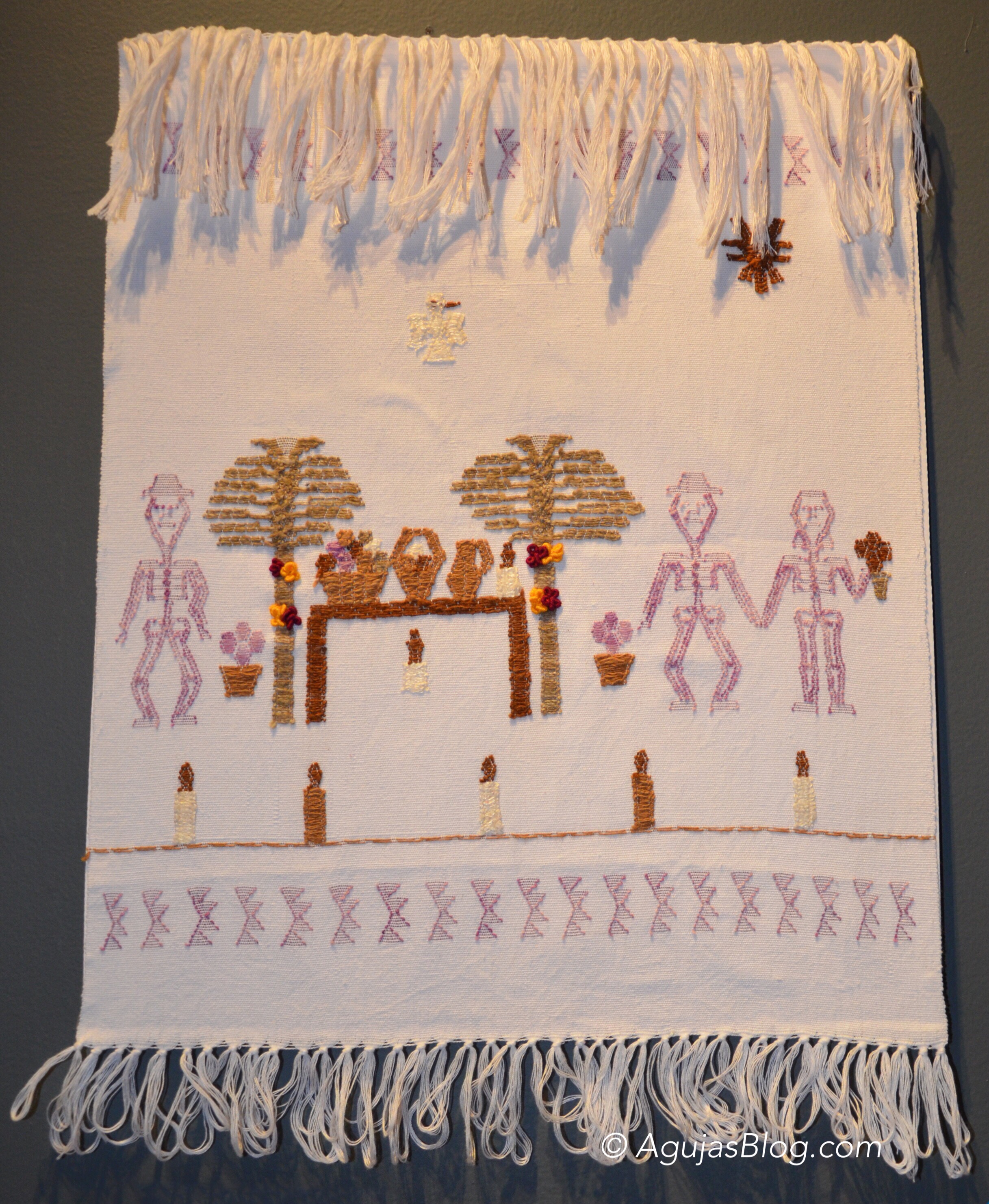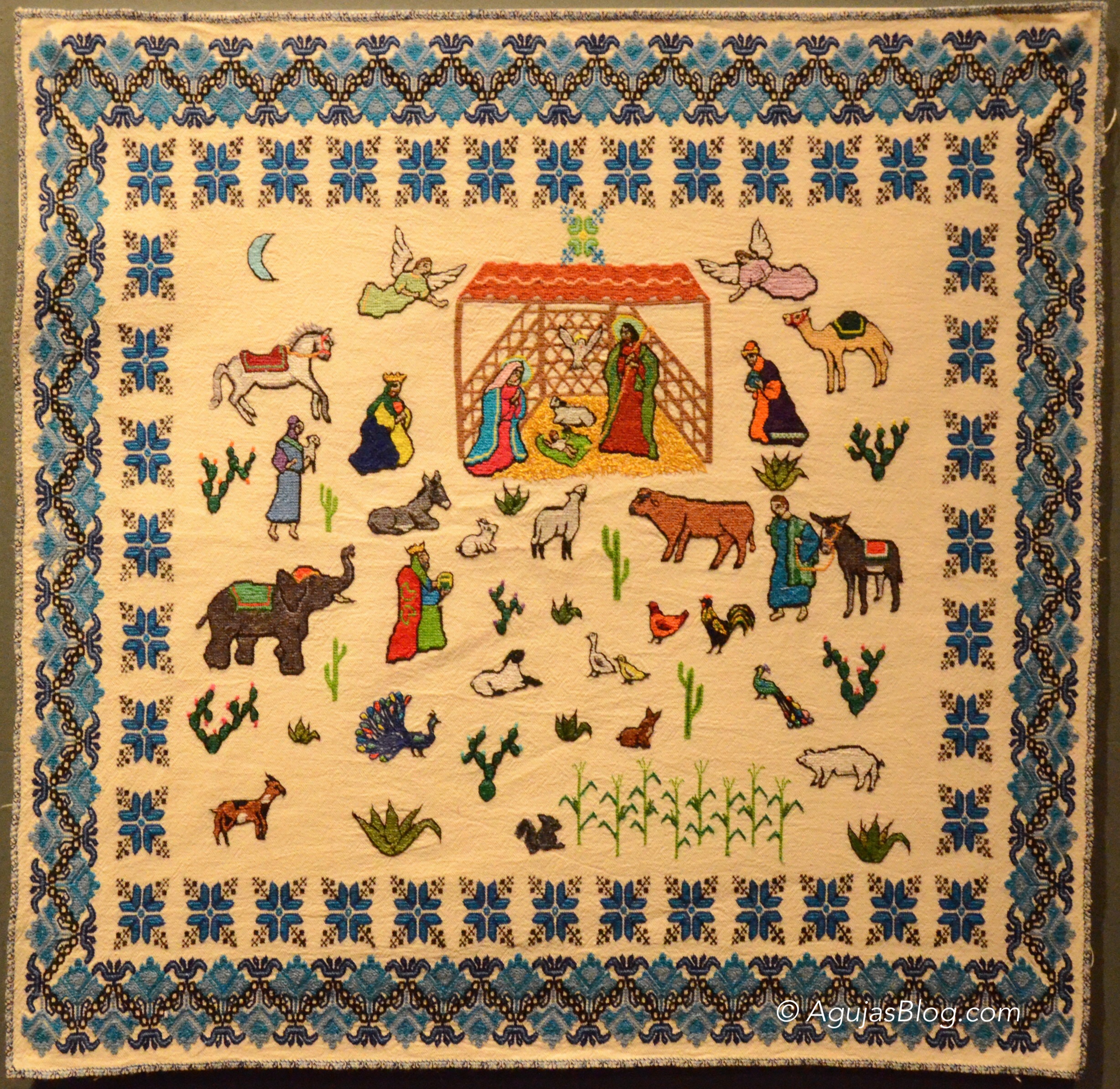 Finely embroidered nativity on cotton cloth in the style of the Mazahaua people.