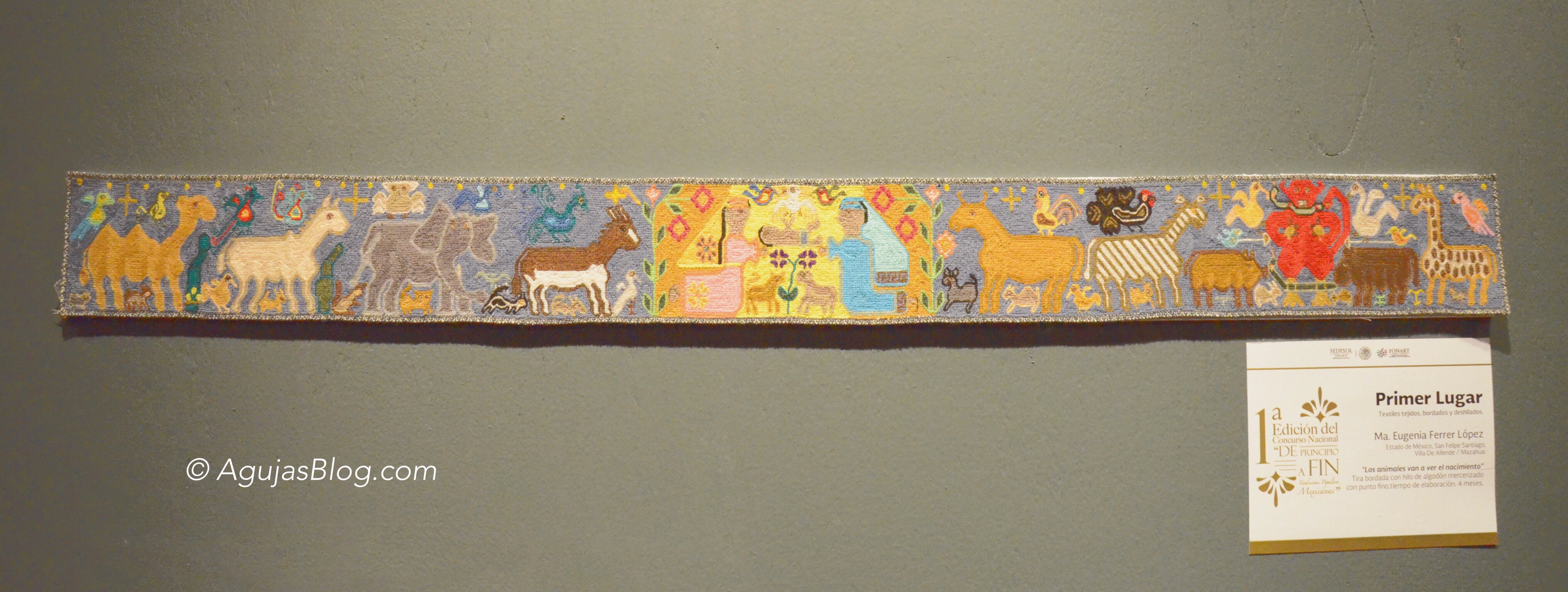 “The animals go to see the nativity.” Embroidered strip with mercerized cotton thread with a fine point. Time to produce: 4 months.