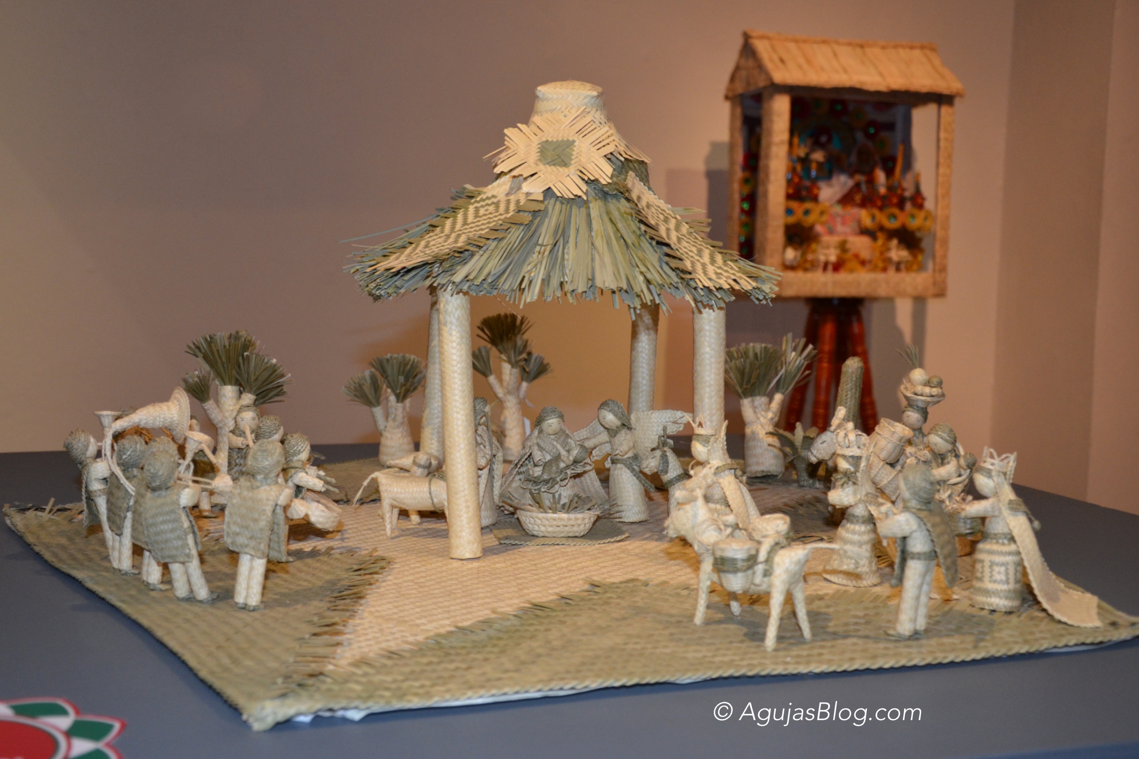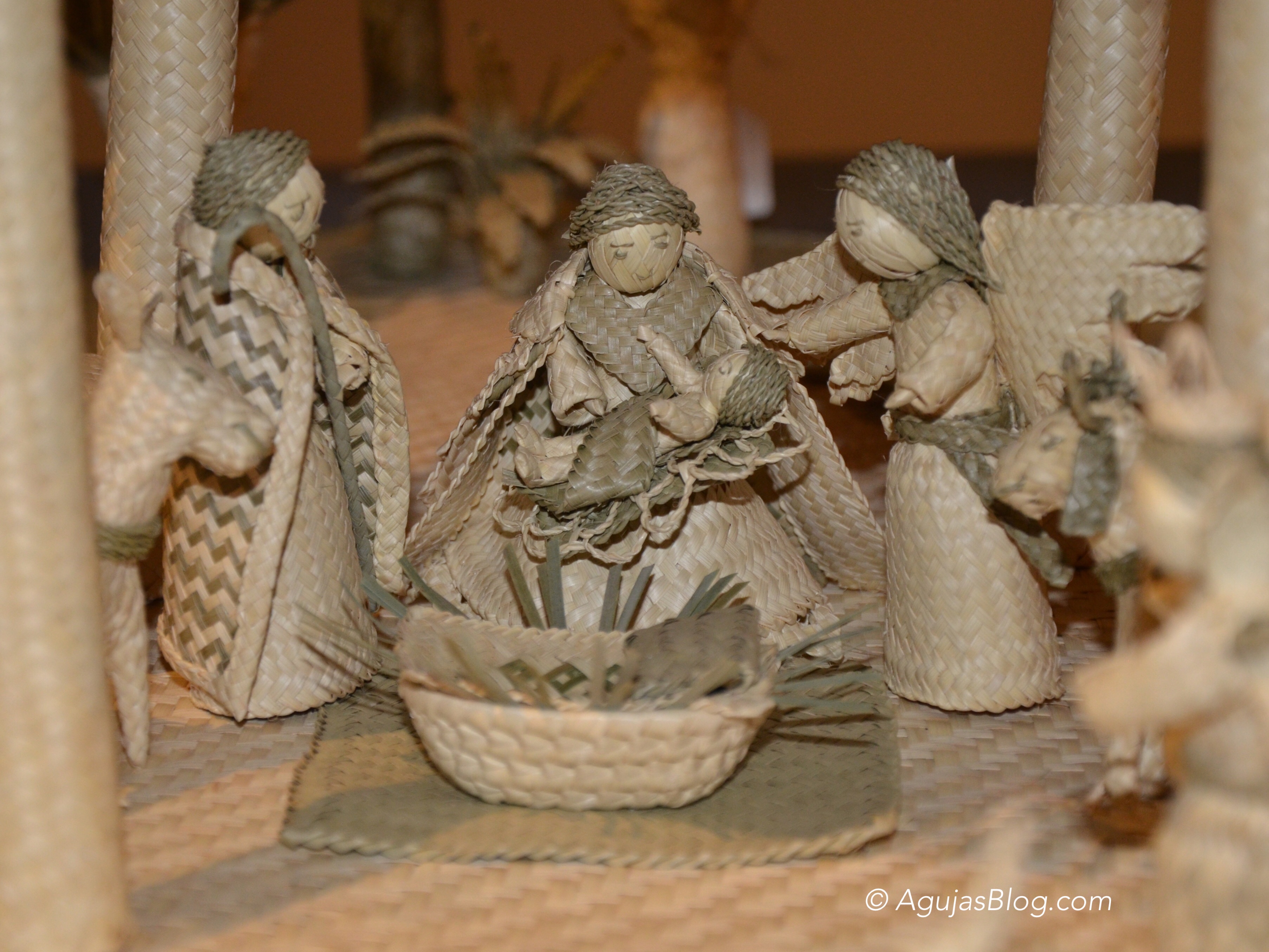 Nacimiento tejido en palma natural maciza y tierna, elaborada con técnica de esfera. 38 piezas.