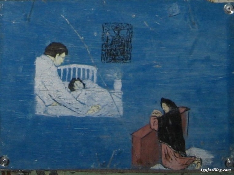 In the center is La Malinche (Doña Marina), a native woman who became Cortés’ mistress and mother of his child Martín. Malinche knew both the (Aztec) Nahuatl language and Maya, thus enabling Hernán Cortés to communicate in both. She became a very valuable interpreter and counselor. The blue-eyed child staring outward at us represents the mixture of the races. (Source: http://bit.ly/2tubi3n)