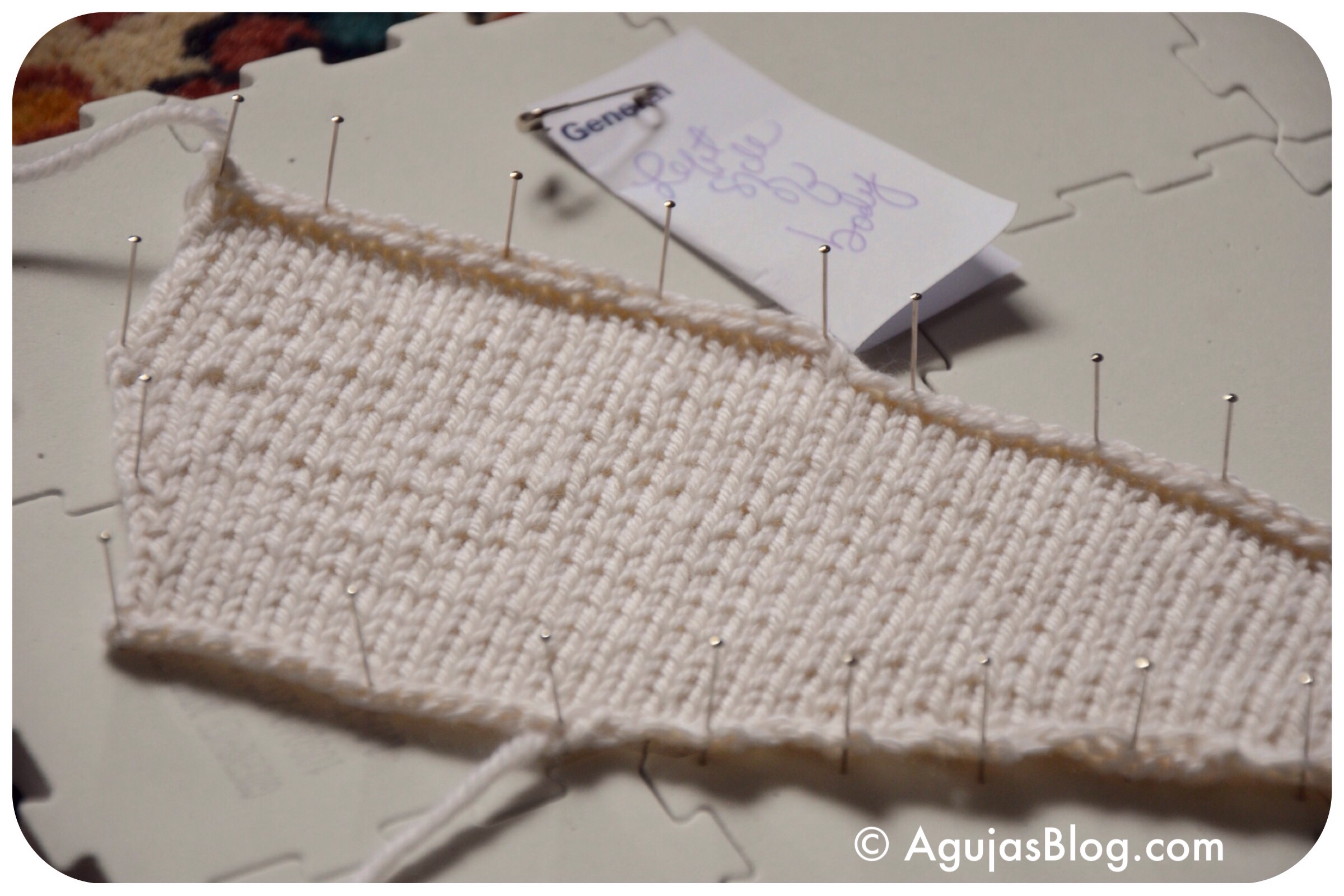 It’s a simple stockinette stitch pattern using doubled up yarn for thickness and a seed stitch border.