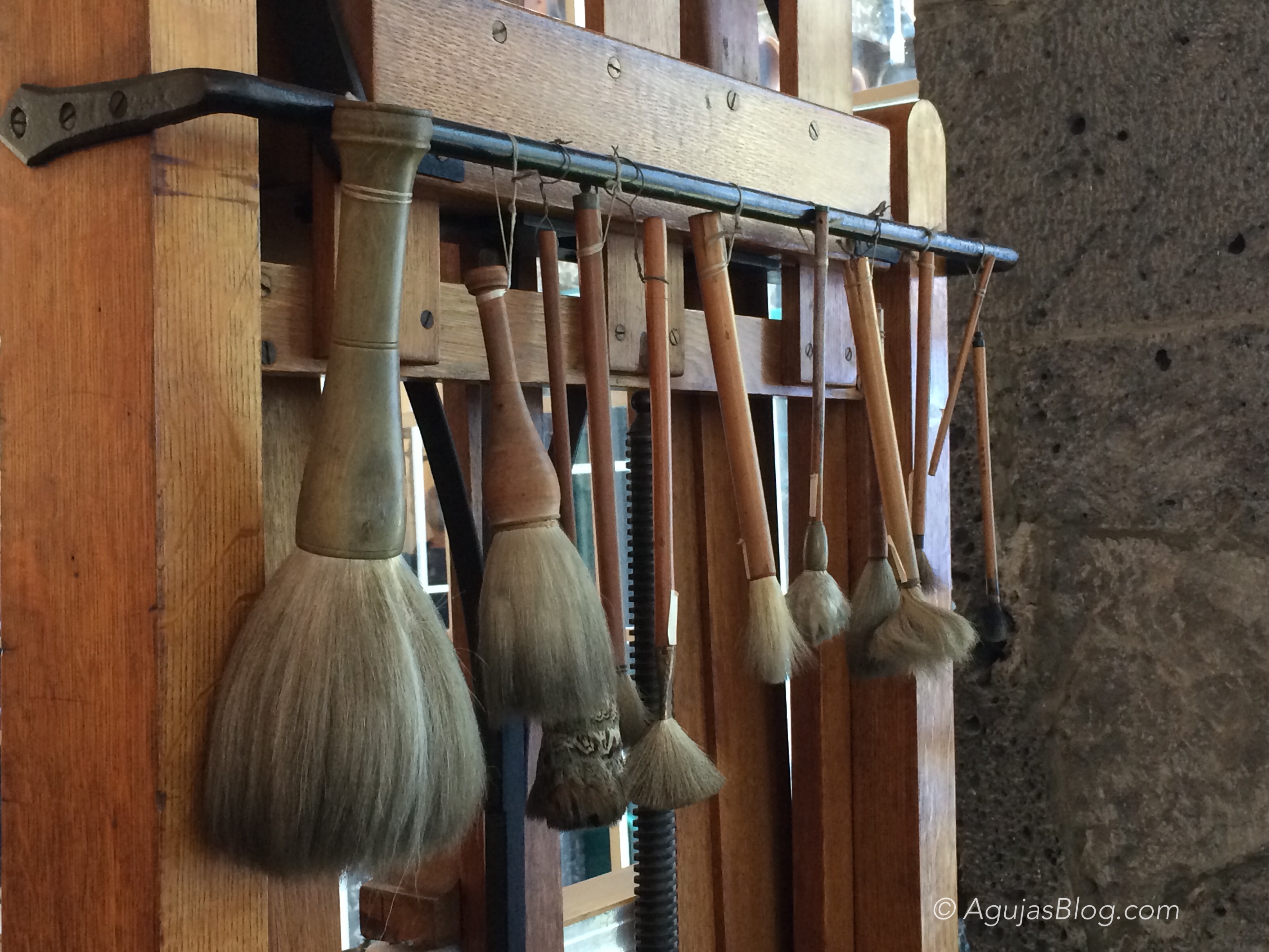 Early Saturday morning, we made our way to the neighborhood of San Ángel for the Bazaar Sábado. We walked along cobble-stoned streets into beautiful colonial buildings and around the periphery of San Jacinto Square overflowing with artists. Artisans in many crafts gather every Saturday morning featuring artwork in leather, glass, pottery, jewelry, and textiles. The Androna textiles were magnificent in their multi-colored hues.